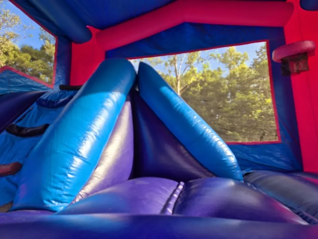 A great combo jumping castle with internal slide that is suitable for toddlers. Comes with an internal ball hoop and plenty of room for jumping